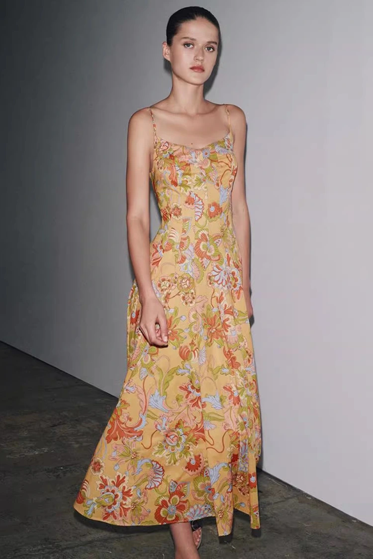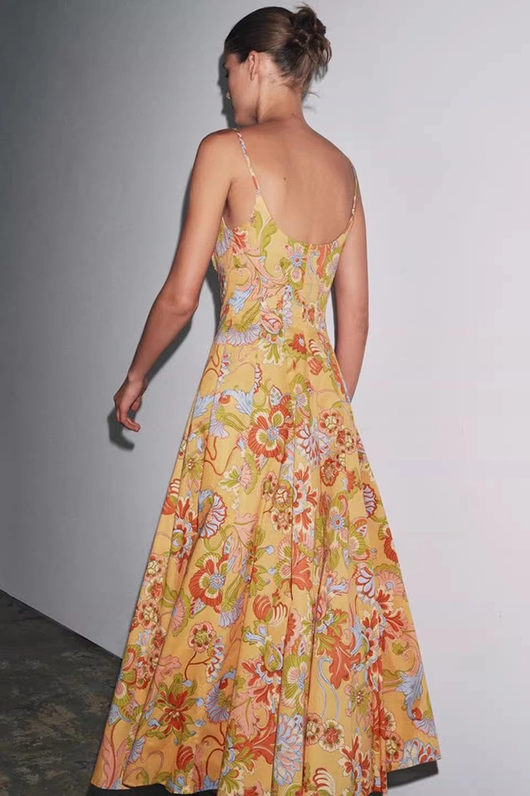 A RUIFAN női pamut nyári virágmintás ruha egy remekmű, amely tökéletesen ötvözi a retro romantikát a nyár nyugodt hangulatával. A világos narancssárga alapot gazdag textúrájú virágmintás borítja, meleg és lágy színnel, amely életerőt áraszt. Úgy tűnik, egész virágzó nyári kertet von be a tested köré.
