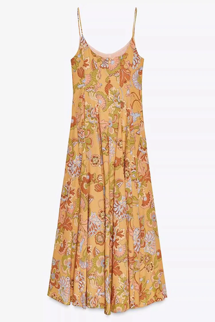 A Női Pamut Nyári Virágmintás Ruha világos narancssárga alapszínű, gazdag textúrájú virágmintás nyomatok borítják a teljes felületet. A meleg és lágy tónusok vitalitást hoznak, mintha egy egész virágzó nyári kertet viselne a test. Egyesíti a retro romantikus légkört a nyári nyugodt hangulattal. A sziluett ujjatlan és nyakba akasztható kialakítású, letisztult és üdítő vonalakkal, amelyek ügyesen feltárják a váll- és nyakvonalakat, arányosan formálják az alakot, ugyanakkor kiszabadulnak a rövid ujjak kötöttségeiből, kielégítve a forró nyár öltözködési igényeit. A szoknya szegélye laza és mérsékelt, nem válogatós a testalkat tekintetében, könnyen elrejti a derék, a has és a lábak apróbb hibáit, így nagyon barátságos minden testalkatú nővel. A retró minta és a letisztult sziluett tökéletes kombinációja lehetővé teszi, hogy ez a ruha ne csak a nők nőies varázsát mutassa be, hanem megőrizze a lezser és laza stílust, áttörve az egyetlen ruha korlátait, és alkalmazkodjon a különféle stílusokhoz.
