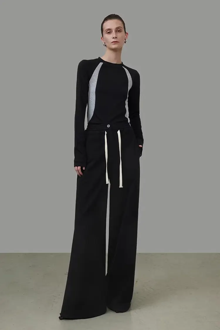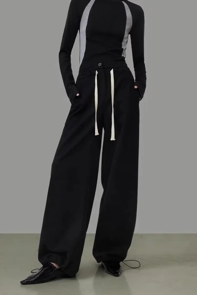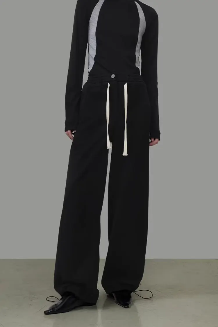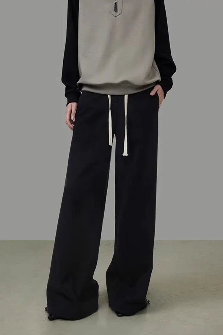 A mikro A-alakú széles szárú nadrág stílust és a 3D háromdimenziós vágást alkalmazzuk. A részletek többszöri igazítása után a forma jobban illeszkedik az ázsiai testtípushoz. A magas derekú és széles derekú felső kialakítás hatékonyan megemeli a derékvonalat, a természetes lelógó húzózsinórral kombinálva, egyszerű és ügyes anélkül, hogy terjedelmes lenne. A nadrágforma erősen hat a derékra, a hasra, a csípőre és a lábakra, különféle testtípusokhoz illeszkedik, könnyen tud karcsú arányt és elegáns temperamentumot felmutatni.