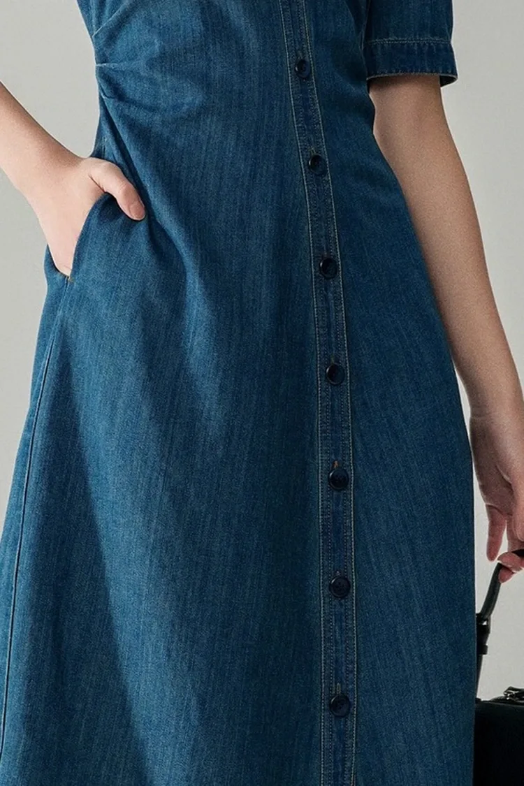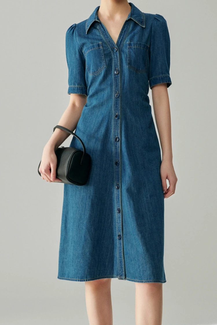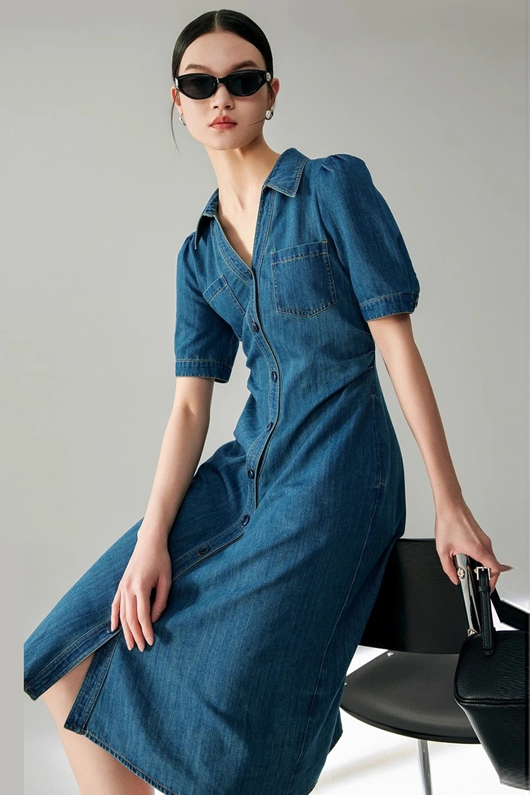 A Women's Jeans Cotton Classy Dress 100%-ban kiváló minőségű tiszta pamutból készült, amely a tavaszi és őszi szezonban az egyik legnépszerűbb anyag. Kiváló légáteresztő és nedvszívó képességű, puha és kényelmes viselet, nem okoz irritációt, minden bőrtípusra alkalmas, szívóssága, tartóssága és moshatósága kiemelkedő. Mosás után nem válik ki, nem deformálódik, nem fakul, hosszú ideig megőrzi egyenes és dús alakját, alacsony az értékesítés utáni költsége, és különösen alkalmas üzleti alkalmi és napi ingázási ruhákhoz. Ez a termék fő anyagi előnye is.