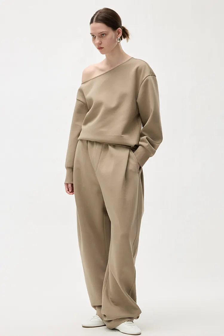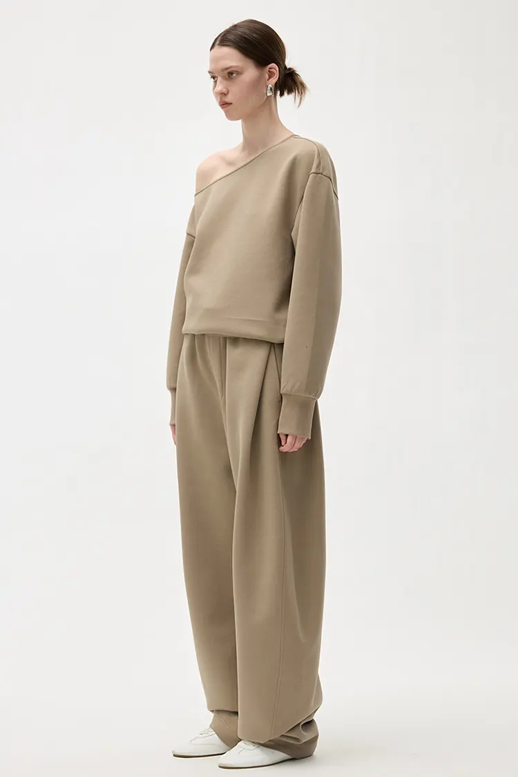 A nadrág teljes derékrésze redős technológiával készült. A fazon laza és kényelmes, elegáns stílussal. Különféle lábformákat gyönyörűen tud formálni, és nagyfokú rugalmassággal rendelkezik a lábvonalak tekintetében. A laza, széles lábú szabást nem korlátozza a testforma, vizuálisan karcsúbbnak és egyenesebbnek tűnik a lábak. Séta közben a kendőzés természetes. Megőrzi a hétköznapi nadrágok lezser és szabad szellemiségét, miközben a széles szárú nadrágok letisztult és elegáns jellemzőit is megőrzi. A hagyományos melegítőnadrágtól eltérően erősebb a divat és a kifinomultság érzéke. A célközönség széles, az értékesítési konverzió stabil.