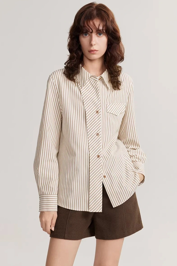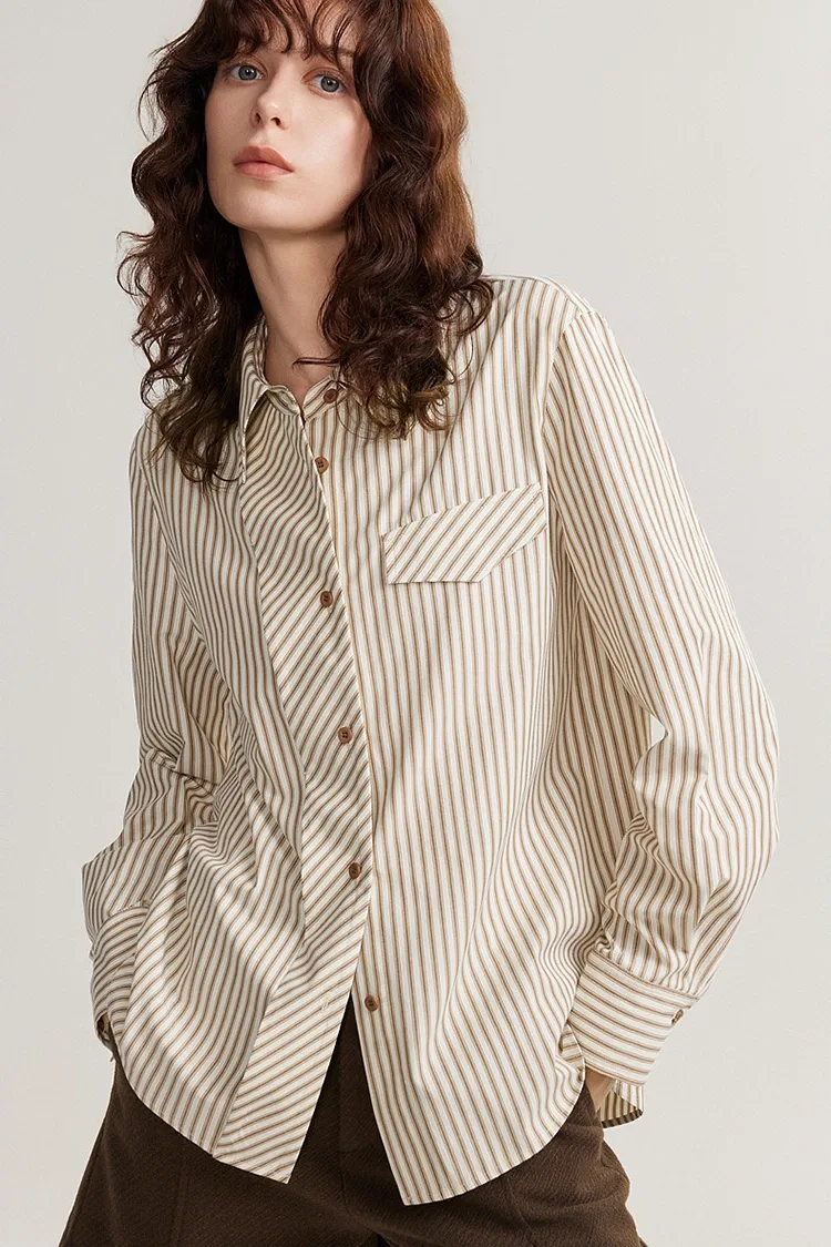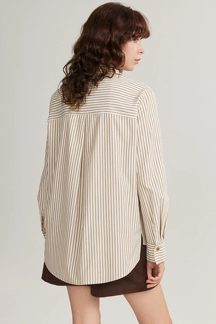 A női laza csíkos alkalmi blúz tudományosan kiegyensúlyozott anyagból készült, 58,7% poliészter és 41,3% pamut anyagból, amely ötvözi a kényelmet és a praktikumot. Ez az előnyben részesített anyag a vásárlók tömeges vásárlásához. A poliészter tartalom növeli az anyag szívósságát és ráncállóságát, így kevésbé hajlamos a deformációra és a foltosodásra. Könnyen kezelhető és nem igényel gyakori vasalást, jelentősen csökkentve a vásárlók értékesítés utáni költségeit. A pamuttartalom biztosítja az anyag bőrbarátságát és légáteresztő képességét, puha és sima textúrájú, irritáció nélkül. Kényelmes tavasszal és ősszel viselni, nem izzad, és különböző bőrtípusúak számára alkalmas. Az anyag nem kopik könnyen, finom textúrájú, a csíkminta pedig erősen nyomott, nem valószínű, hogy leesik vagy kifakul. Szigorú minőség-ellenőrzési vizsgálaton esett át, és megfelel a nemzetközi minőségi szabványoknak. Ugyanakkor az anyagvastagság közepes, tavasszal és ősszel felső- és belsőruházatra is alkalmas.
